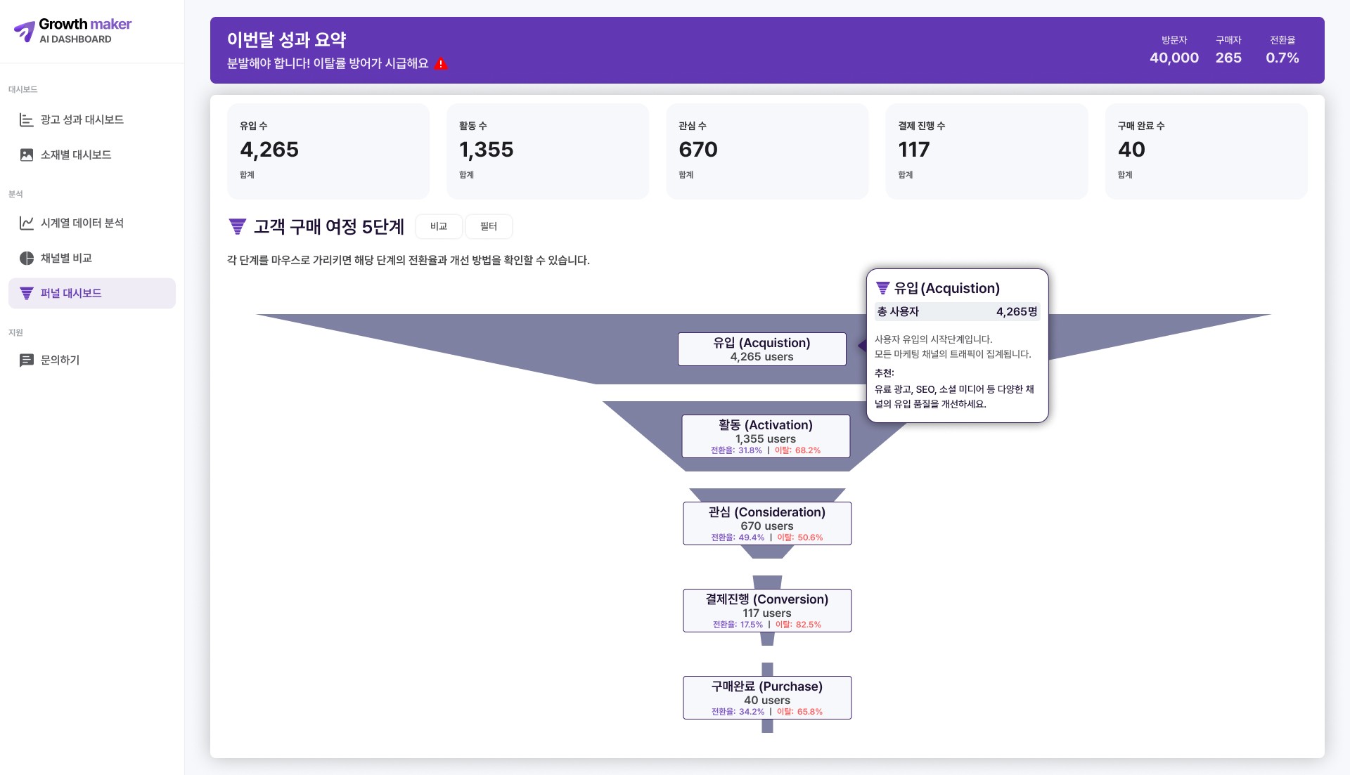 기업에 맞는 선택, 그로스메이커 AI 대시보드와 함께하세요.