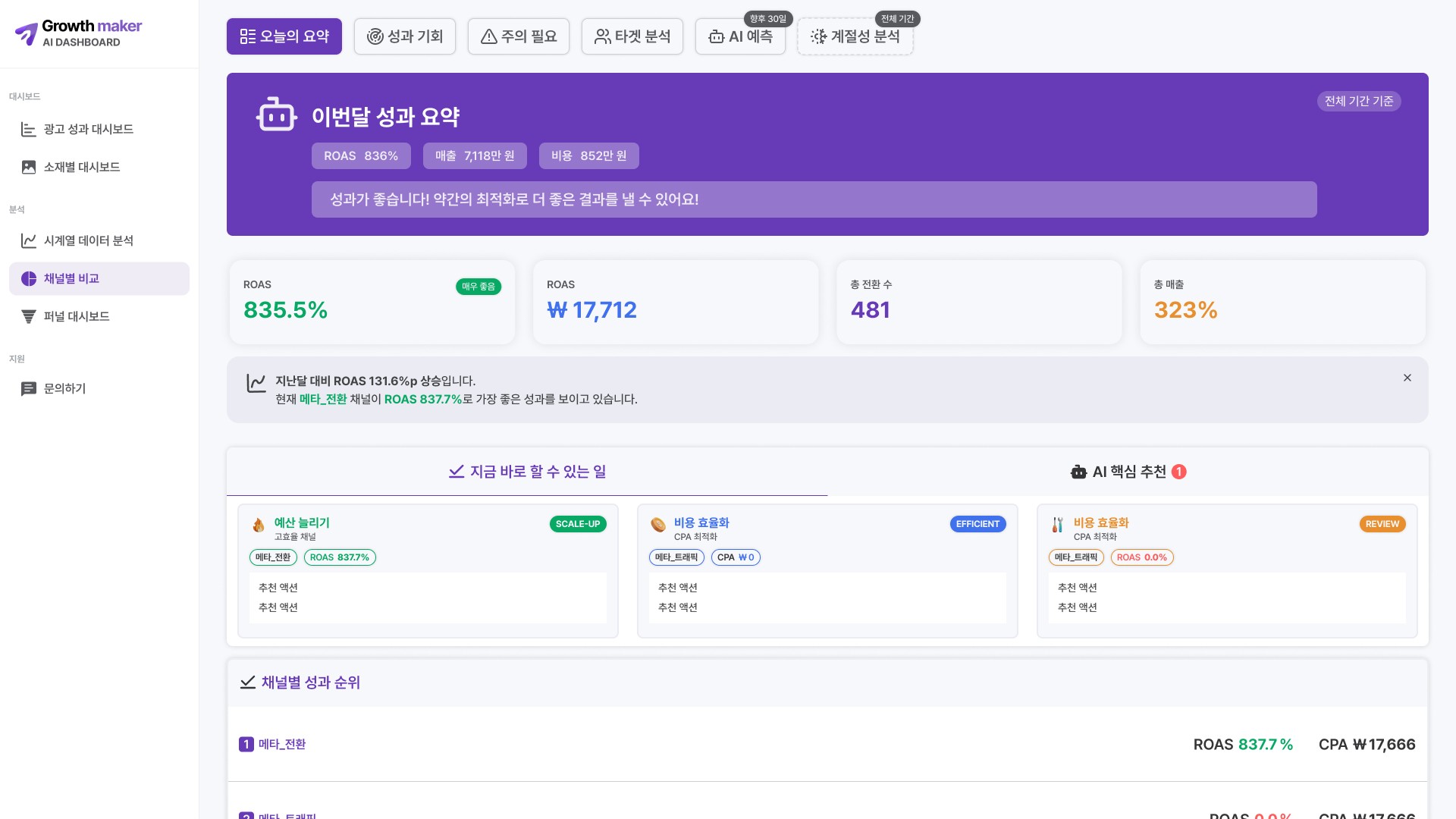 그로스 메이커 AI 대시보드만의 차별점